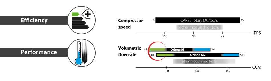 In particular, rotary DC inverter technology significantly reduces both ON-OFF cycles in steady-state operation and slashes pull-down times due to the high motor operating speed. Control algorithms allow synchronised operation of the compressor, stepper valve and variable-speed fans, so as to ensure the best performance in climates.