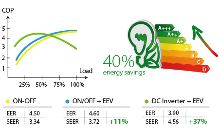 Numerous tests performed in the lab have proven how the combined use of EEV technology and DC compressors guarantees a significant increase in heat pump efficiency and a reduction in running costs. The possibility to integrate high-efficiency devices makes our solution ready to fulfil the requirements of the new EU Energy Efficiency Directive.