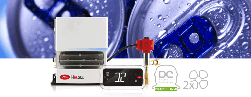 These are the main strengths of Heez, the result of continuous modulation of the variable-capacity rotary compressors (DC inverter), extremely high performance technology that CAREL has for the first time made available to the refrigerated merchandiser segment. DC rotary technology in fact ensures the highest energy performance due to the very wide range of modulation, as well as high reliability and stability, lower noise and more compact dimensions.Heez is therefore the response to the challenges that the industry will have to face in the near future in terms of reducing environmental impact and running costs, while still guaranteeing the required performance. In fact it is fundamental for drinks and similar products to be at the ideal temperature for sale at all times, meaning rapid cooling when opening the store or the bottle cooler, or when restocking the cooler. In addition to guaranteeing such high performance, Heez can ensure results in terms of energy savings that easily exceed the current market benchmarks and indeed anticipate future standards, using a natural refrigerant - propane - to achieve true natural efficiency.