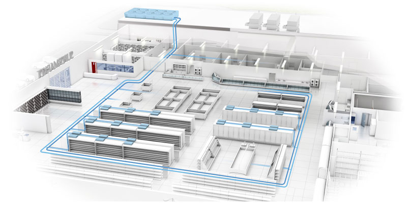 By eliminating the long refrigerant lines that connect the compressor racks to the units and the corresponding need to weld numerous joints on-site, both total refrigerant charge and annual leaks can be reduced significantly. The resulting benefits thus relate to the drastic reduction in the system’s direct influence on the greenhouse effect and its costs, especially in countries where refrigerants are heavily taxed. The application can be easily combined with the building’s air-conditioning, or can be equipped to reuse the heat generated by cooling the showcases.